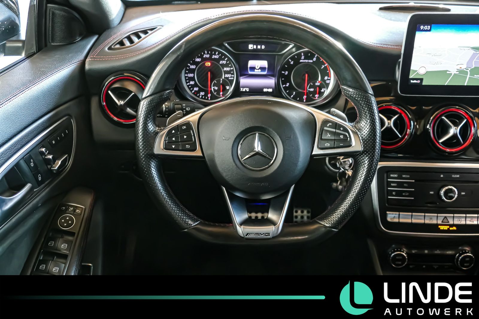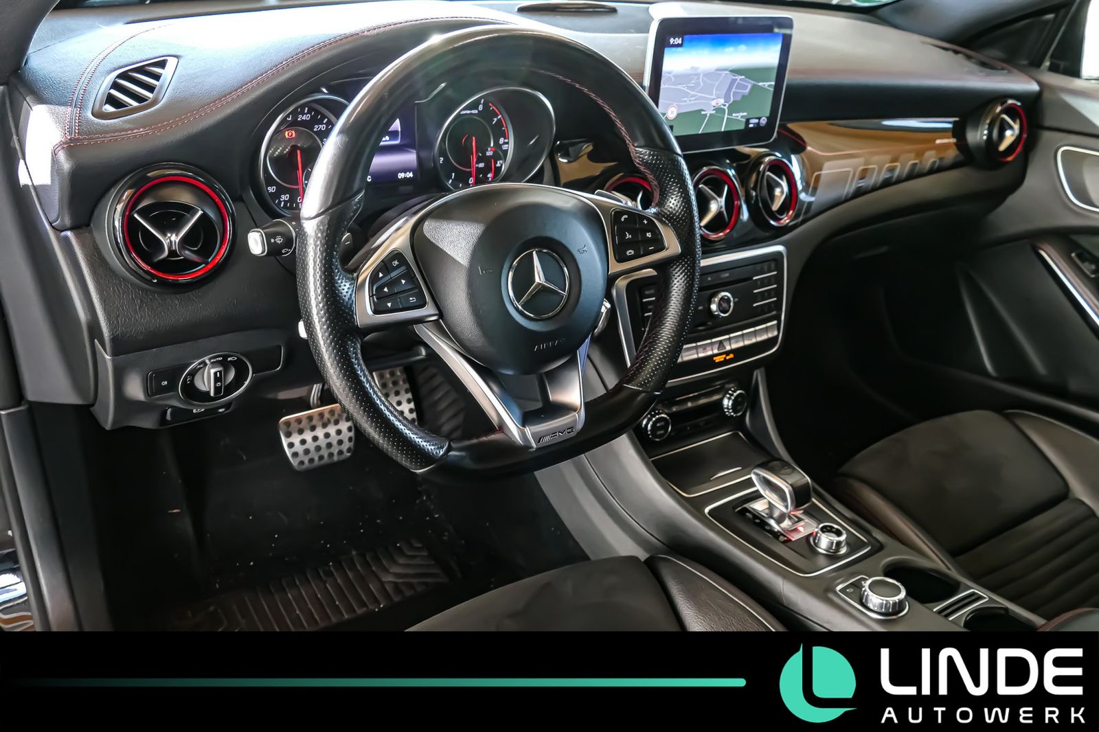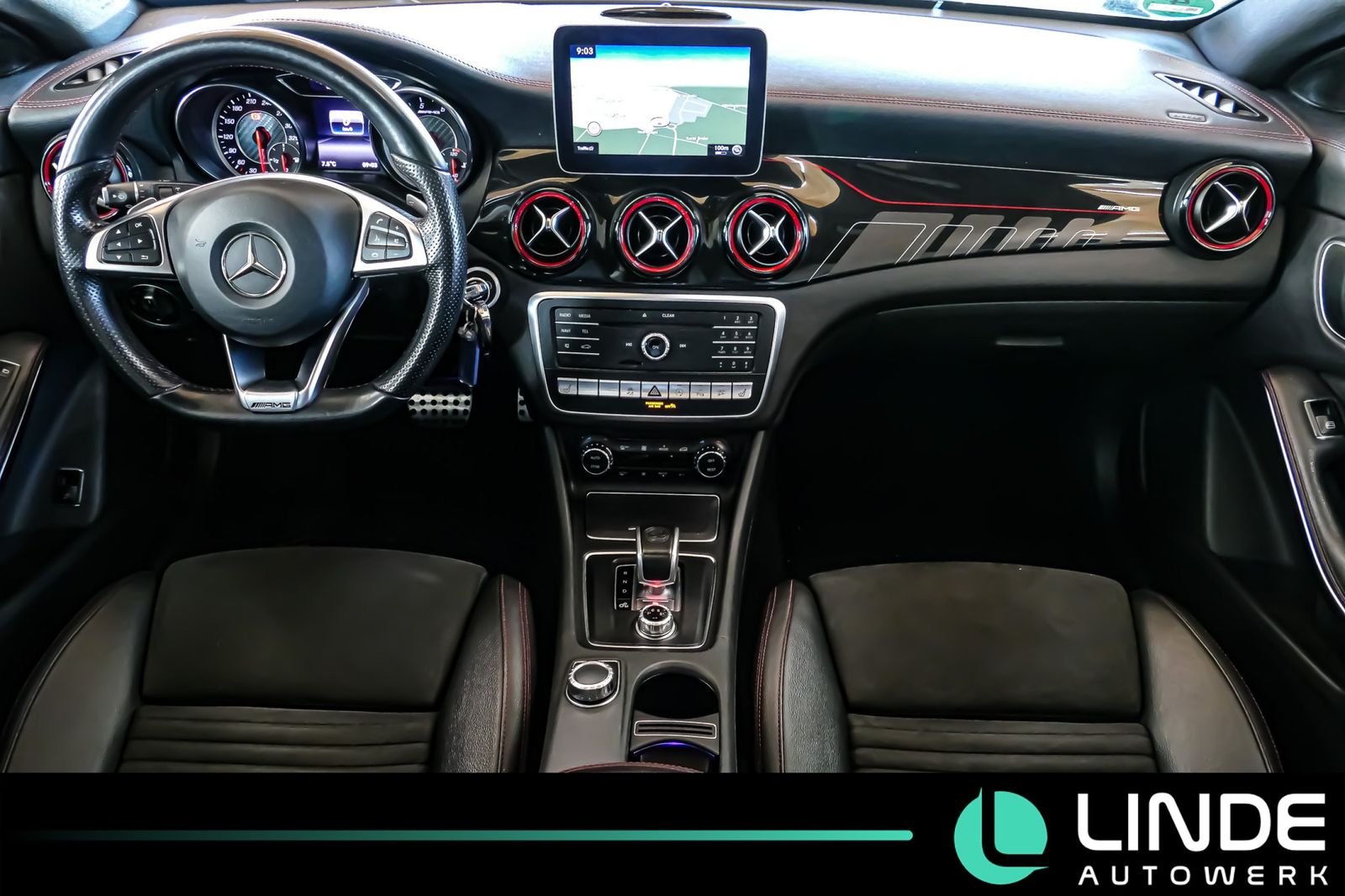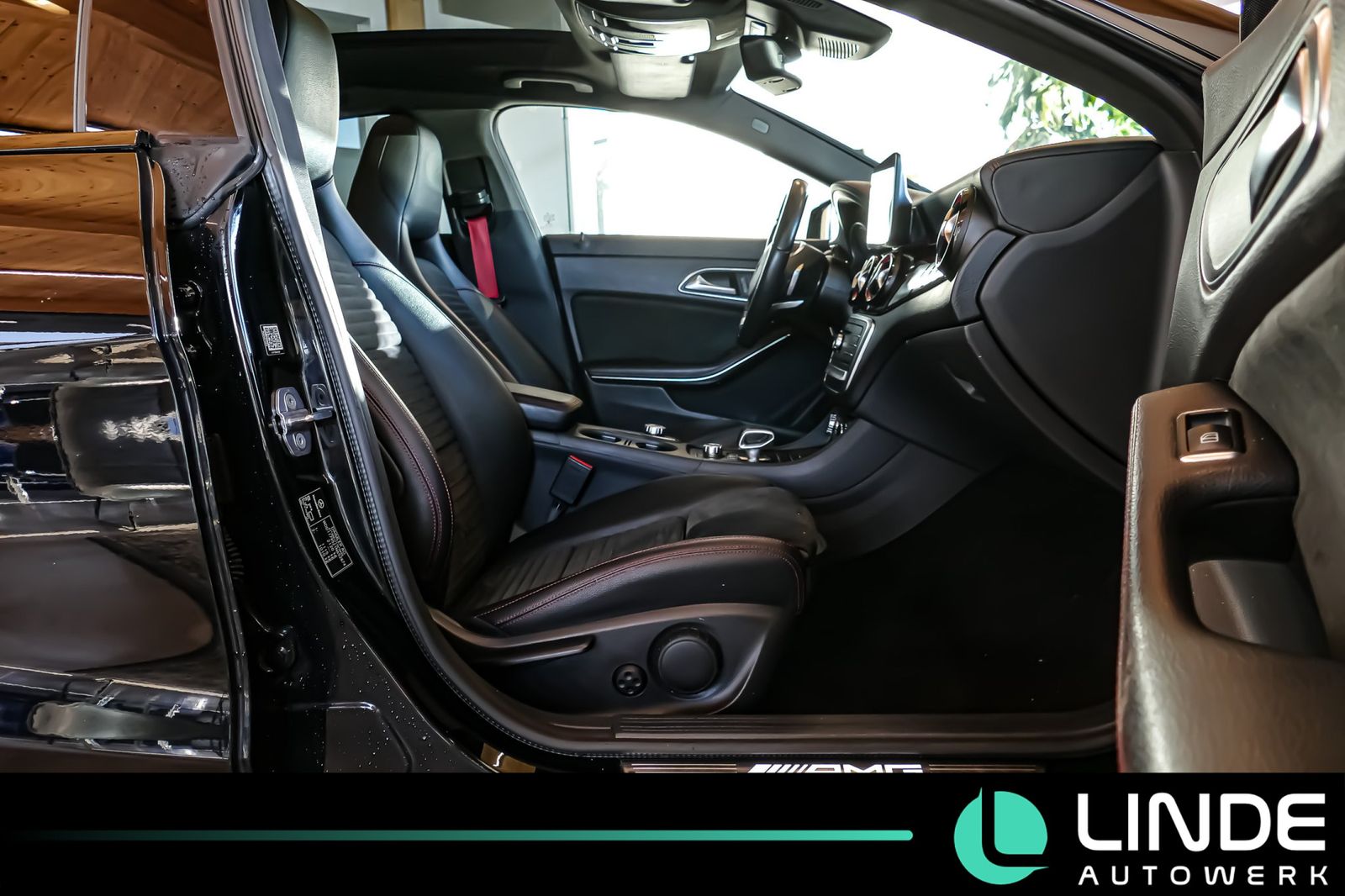 Doppelkupplungsgetriebe DCT, Heckleuchten LED, Heckscheibe heizbar (ESG), Heckschürze, Infotainment-System: Mercedes me connect, Innenausstattung: Zierteile AMG Design Schwarz-Rot, Innenhimmel Stoff, Isofix-Aufnahmen für Kindersitz an Rücksitz, Karosserie: 5-türig, Knieairbag Fahrerseite, Kopf-Airbag-System (Windowbag), Lenkrad (Leder), Lenkrad (Sport) mit Multifunktion, Lenksäule (Lenkrad) mechan. verstellbar, Mercedes-Benz Notrufsystem, Modellpflege mit Code, Motor 2,0 Ltr.