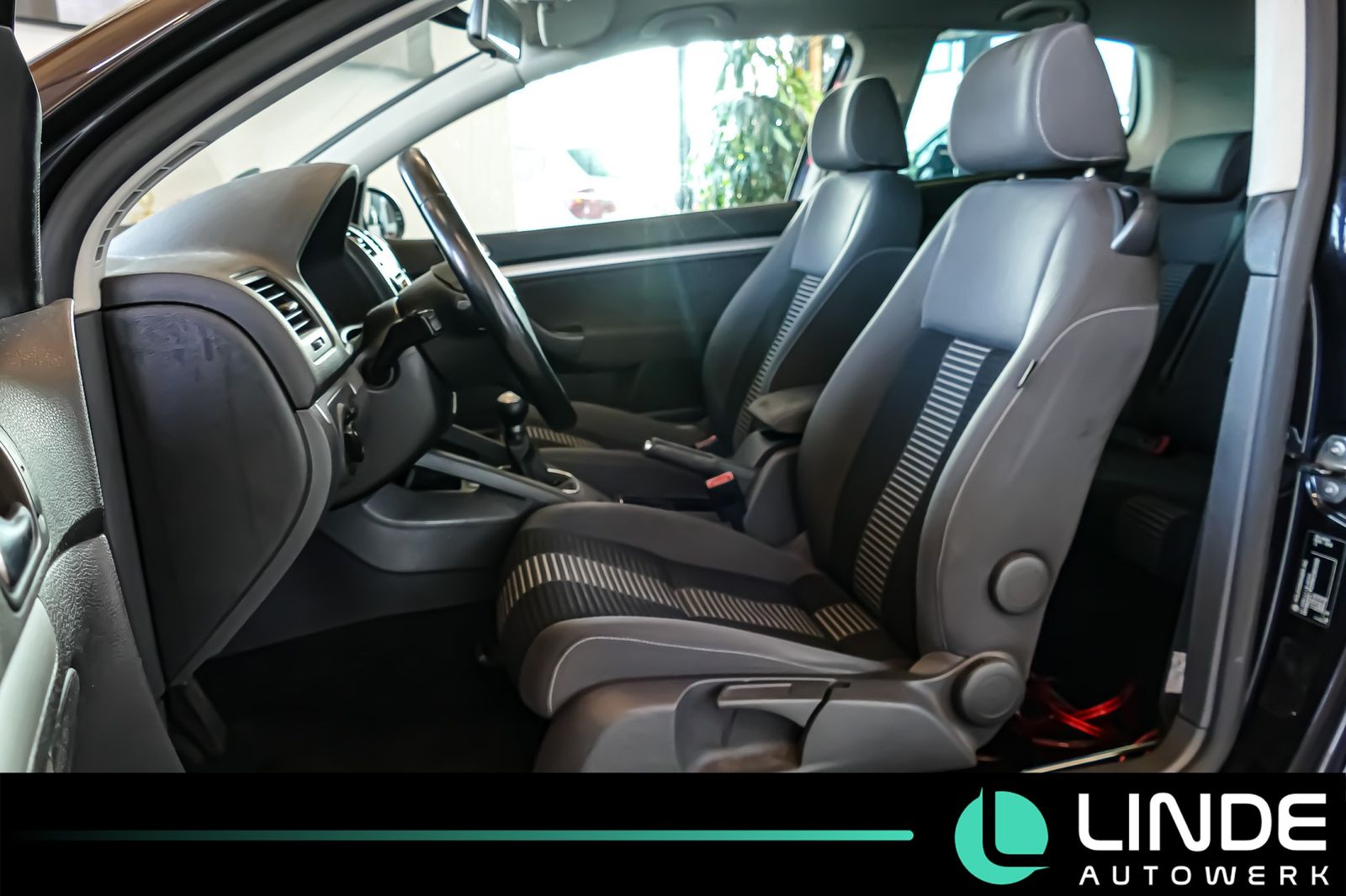 3-Punkt-Sicherheitsgurt hinten mitte, Airbag Beifahrerseite abschaltbar, Airbag Fahrer-/Beifahrerseite, Anti-Blockier-System (ABS), Antriebsart: Frontantrieb, Anzeige für Waschwasserstand, Audiosystem RCD 210 (Radio/CD-Player, 4 Lautsprecher), Ausstattungs-Paket: Licht + Sicht, Außenspiegel asphärisch, links, Außenspiegel elektr. verstell- und heizbar, beide, Außenspiegel lackiert, Bremsassistent, Doppeltonhorn, Einparkhilfe hinten, Einstiegshilfe Easy-Entry, Elektron. Stabilitäts-Programm (ESP), Fensterheber elektrisch vorn, Fernbedienung für Zentralverriegelung, Fußmatten Textil, Gepäckraumabdeckung / Rollo, Geschwindigkeits-Regelanlage (Tempomat), Getriebe 5-Gang, Handschuhfach abschließbar, Heckscheibenwischer, Innenausstattung: Aluminium-Dekor, Innenraumfilter: Staub- und Pollenfilter, Isofix-Aufnahmen für Kindersitz an Rücksitz, Karosserie: 2-türig, Klimaanlage, Kopf-Airbag-System (Sideguard), Kopfstützen hinten (3-fach), Lendenwirbelstützen vorn, Lenkrad (Leder) mit Multifunktion, Lenksäule (Lenkrad) mechan. verstellbar, Höhen-/Längsverstellung, Leseleuchten vorn, LM-Felgen, Mittelarmlehne, Motor 1,4 Ltr.