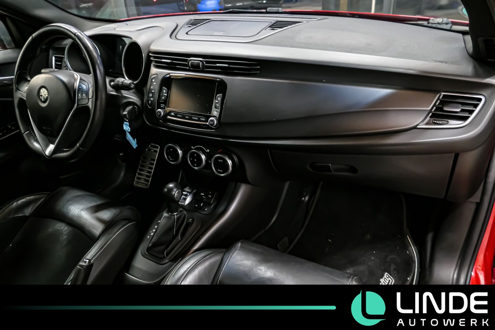 Airbag Beifahrerseite abschaltbar, Airbag Fahrer-/Beifahrerseite, Aktive Kopfstützen vorn, Anti-Blockier-System (ABS), Antriebs-Schlupfregelung (ASR), Audio-/Telefonbedienung am Lenkrad, Auspuffendrohr verchromt, Autom. Begleitfunktion der Beleuchtung (Follow me home), Außenspiegel Dark Chrome, Außenspiegel elektr. verstell- und heizbar, beide, Außentemperaturanzeige, Bordcomputer / Check-Control, Bremsanlage: Brembo, Bremsassistent (HBA / EBA), Einparkhilfe elektronisch vorn und hinten, Einstiegsleisten mit Edelstahleinsatz, Elektron. Bremskraftverteiler (EBD), Elektron. Differentialsperre (Q2), Fahrassistenz-System: Alfa Romeo D.N.A.-Fahrdynamik-System, Fahrassistenz-System: Berganfahrhilfe (Hill-Holder), Fensterheber elektrisch hinten, Fensterheber elektrisch vorn, Fensterrahmen mit Chrom