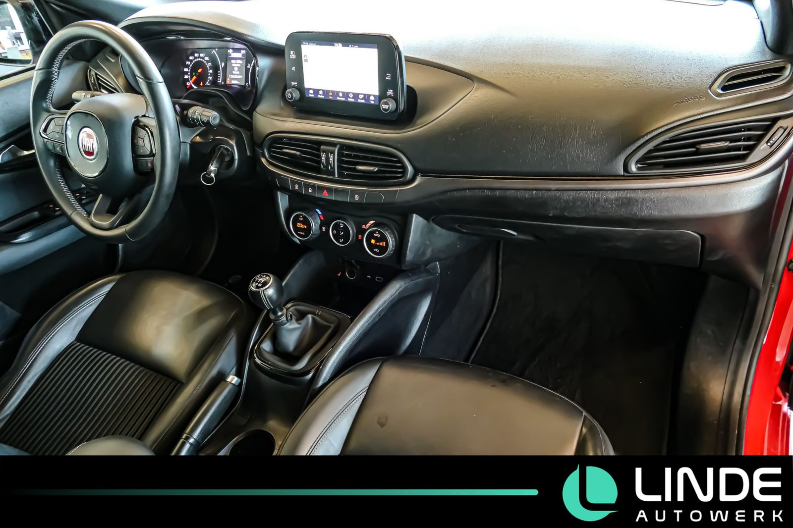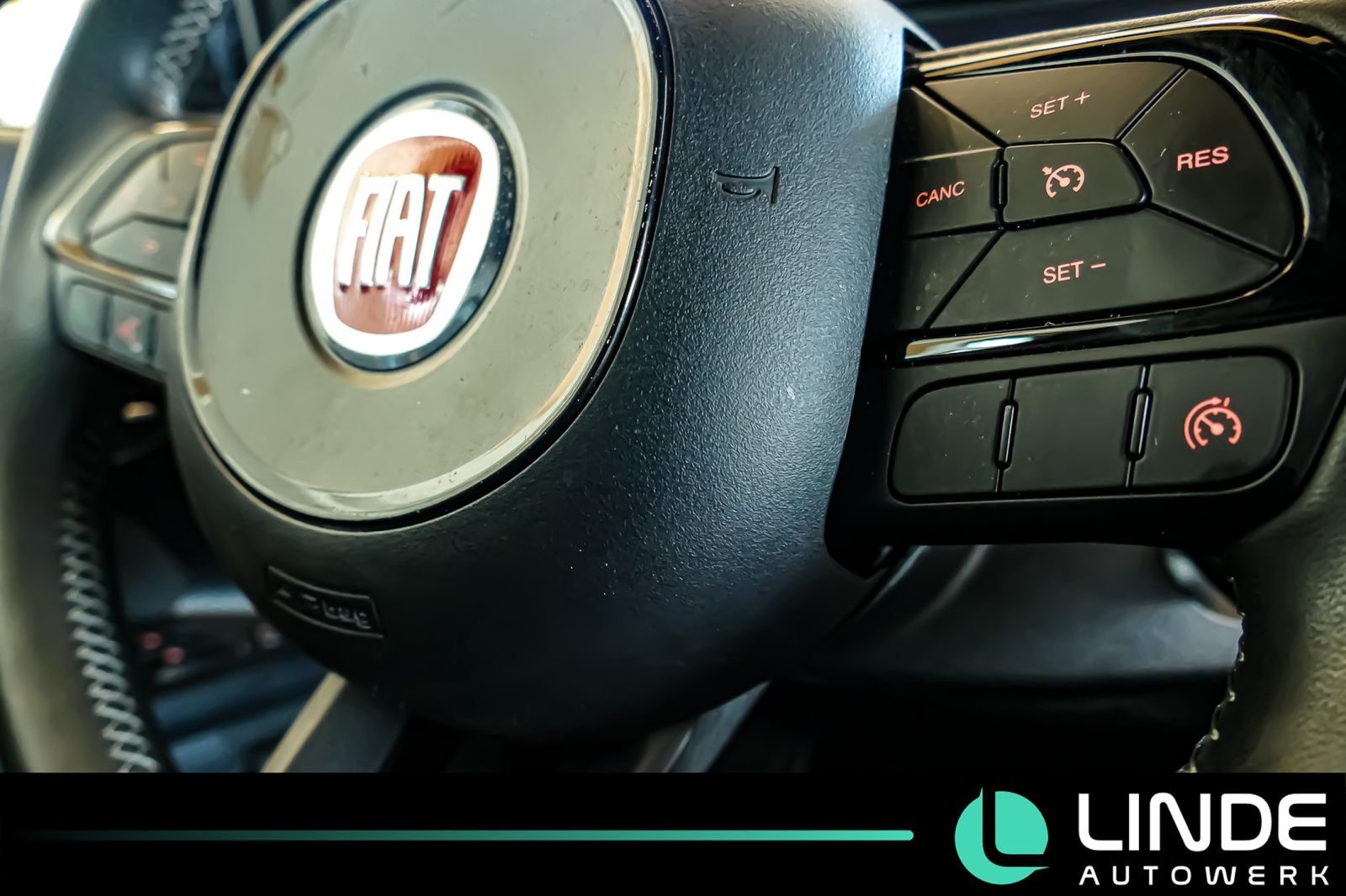 Airbag Fahrer-/Beifahrerseite, Airbag Fahrerseite, Airbag Beifahrerseite, Anti-Blockier-System (ABS), Antriebs-Schlupfregelung (ASR), Armlehne vorn, Audio-/Telefonbedienung am Lenkrad, Außenspiegel elektr. verstell- und heizbar, Außenspiegel schwarz lackiert, Außentemperaturanzeige, Beifahrerairbag abschaltbar, Bi-Xenon-Scheinwerfer, Control-Display mit TFT-Farbdisplay, Einparkhilfe hinten, Elektr. Bremskraftverteilung, Elektron. Stabilitäts-Programm (ESP / ESC), Exterieurumfänge schwarz, Fahrassistenz-System: Berganfahrhilfe, Fahrassistenz-System: Bremsassistent, Fensterheber elektrisch hinten, Fensterheber elektrisch vorn, Fußmatten, Geschwindigkeits-Regelanlage (Tempomat), Getriebe 6-Gang, Infotainment-System: UConnect mit MP3-Player (Touchscreen 7''), Freisprechanlage Bluetooth inkl. Audio-Streaming, Multimedia-Schnittstelle (USB / AUX-IN / SD-Karten-Schnittstelle), USB-Schnittstelle, Karosserie: 5-türig, Klimaautomatik, Kopf-Airbag-System vorn und hinten, Kopfstütze hinten mitte, Kopfstützen hinten, Lenkrad und Schalt-/Wählhebel Leder, Lenksäule (Lenkrad) verstellbar (vertikal / axial), Leuchtweitenregelung, Mobile Online Dienste UConnect Live, Motor 1,4 Ltr.