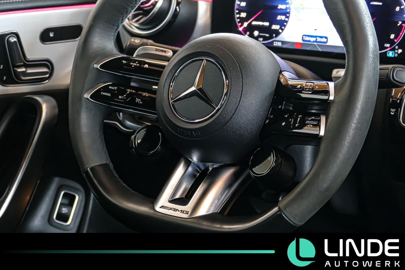 310 kW CGI KAT, Multimediasystem MBUX (Digitales Multimedia-System), Reifendruck-Kontrollsystem, Rücksitzlehne geteilt / klappbar, Schadstoffarm nach Abgasnorm Euro 6d, Scheibenwischer mit Regensensor, Seitenairbag (Sidebag) vorn, Seitenschweller Wagenfarbe, Service-System: Fingerabdruck-Scanner für MBUX, Sitz-Komfort-Paket, Sitzbezug / Polsterung: Ledernachbildung Artico / Dinamica, Sprachbediensystem Erweiterte Funktionen (MBUX), Start/Stop-Anlage, Surround-System Burmester, Zentralverriegelung mit Fernbedienung