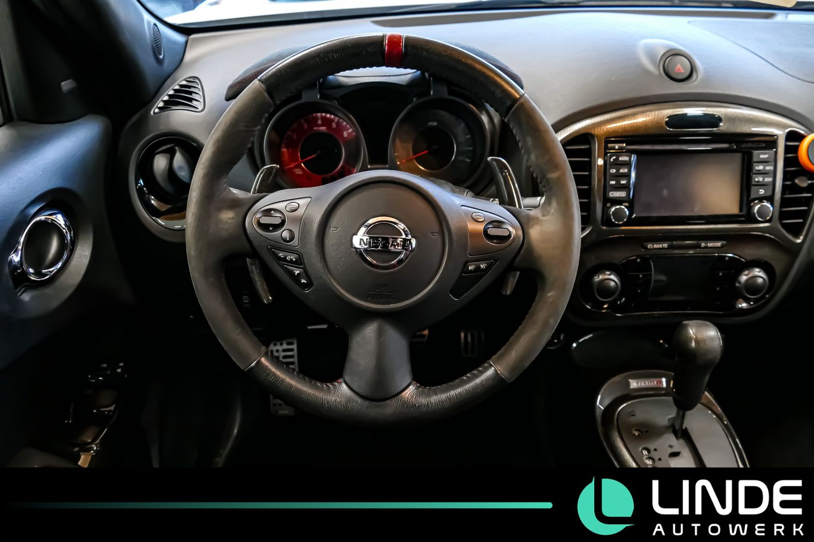 157 kW 16V KAT, Nebelschlussleuchte, Radstand 2530 mm, Reifendruck-Kontrollsystem, Reserverad als Notrad, Rücksitz geteilt/klappbar, Schadstoffarm nach Abgasnorm Euro 6, Schalt-/Wählhebelgriff Leder, Scheibenwischer mit Intervallschaltung, Scheibenwischer mit Regensensor, Schließ-/Startsystem intelligent key, Servolenkung elektronisch gesteuert, Sicherheitsgurte vorn höhenverstellbar, Sitz vorn links höhenverstellbar, Sitzbezug / Polsterung: Velours-Leder (Nismo), Sonnenblenden mit Spiegel, Start-Stop-Knopf, Steckdose (12V-Anschluß) in Mittelkonsole, Tagfahrlicht LED, Türgriffe innen verchromt, Verglasung hinten abgedunkelt, Wegfahrsperre (elektronisch), Wärmeschutzverglasung mit UV-Schutz, Zentralverriegelung mit Fernbedienung, 12-36 Monate Garantie (optional)