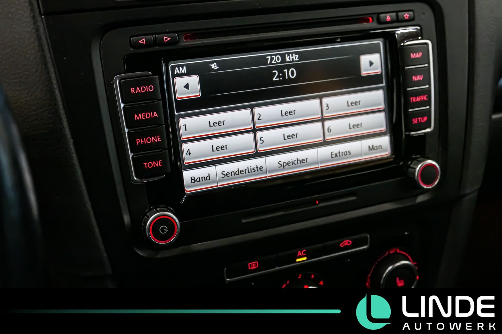 DURCHGEHEND SCHECKHEFTGEPFLEGT!, Deutsche Ausführung, HU / AU ( März / 2027 ), 16'' Aluminiumfelgen / Sommerreifen, Audio-Navigationssystem RNS 510 (CD/DVD, Festplattenspeicher, MP3, 10 Lautsprecher), Business-Paket, Lenkrad (Leder) mit Multifunktion, Metallic-Lackierung, Reserverad in Fahrbereifung (Stahl), Technik-Paket, Vorrüstung Mobiltelefon/Handy Premium mit Bluetooth-Schnittstelle